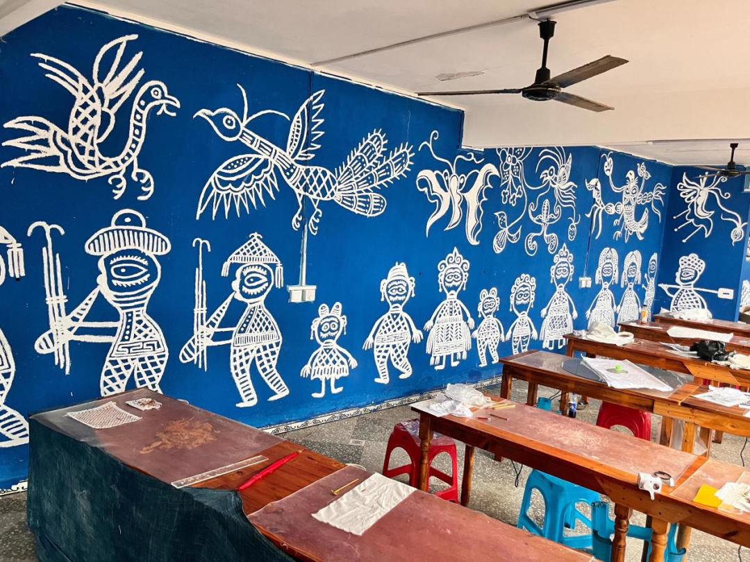 ▲贵州省黔东南苗族侗族自治州一座苗寨山村内学习蜡染的场地。(受访者供图)